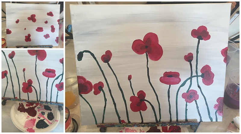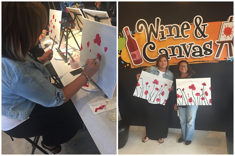Like I said, it took about 2 hours or so to complete our paintings. The whole class then took their works of art to the stage for a group photo. They also took photos while we painted to post on their facebook page! We had such a great time during the class. We laughed, chatted, and got to take home our finished masterpieces. It was definitely a nice change from netflix and wine on the couch 🙂