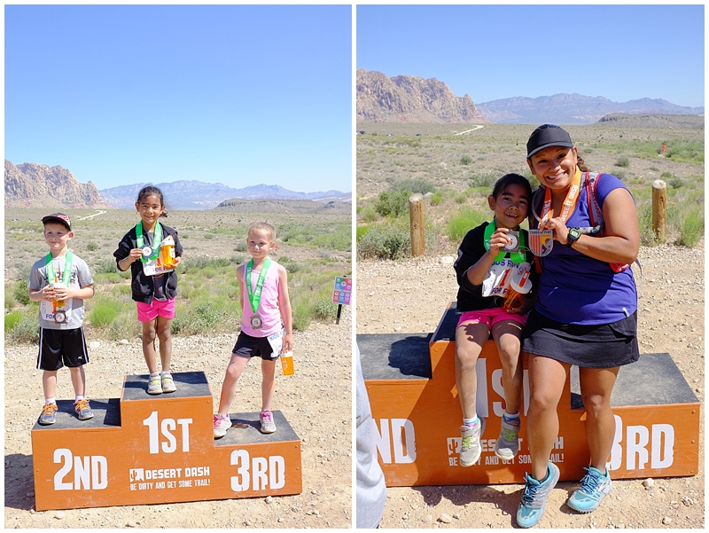 Now, about 30-45 minutes after my race it was time for the 2K kids race. Elysse was ready to run and was super excited to get started. Desert Dash just recently introduced the kids races to their lineup, so there were only a total of 3 kids for this race. I sure hope they keep it for future races and that more kids show up for them. Running is such a great sport and it can really help teach kids the importance of training, endurance, and rewards for hard work. Elysse started the race strong and she finished strong. She led the whole time and came in first place. That really made her feel so proud of herself and in turn, we were also so proud of her. She gave it her all and it paid off! I can’t wait for her to run another race again and that she can find a true love for running!